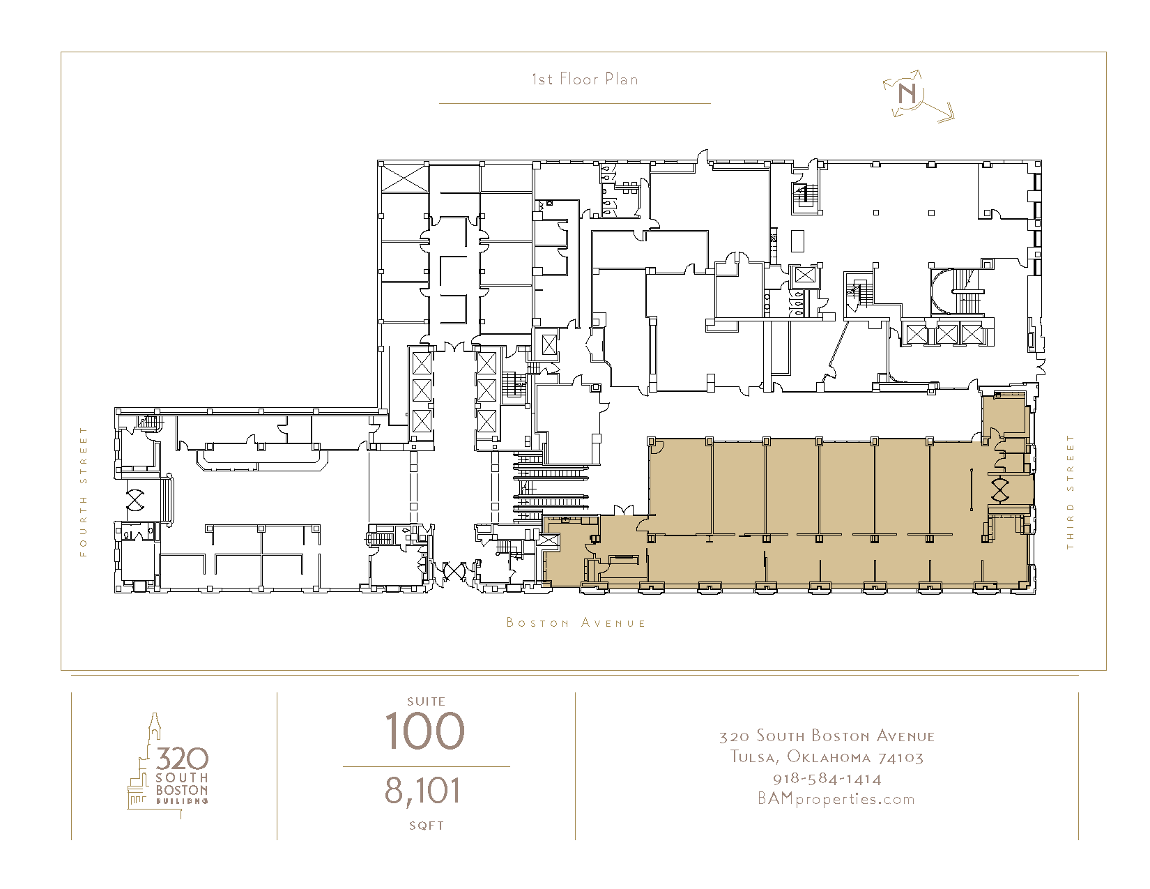 320 South Boston — 1st Fl, Ste 100320 S Boston Ave. Tulsa, OK 74103Rate includes utilities, building services and property expenses SIZE 8,101 SF TERM 5-10 Yrs RATE Upon Request SPACE USE Office CONDITION - AVAILABLE Now Download Floor Plan