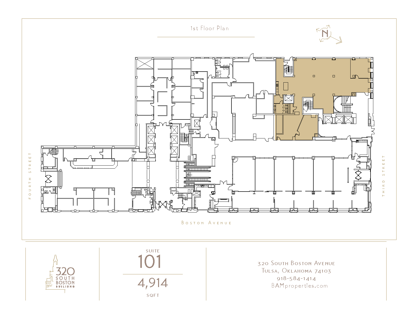 320 South Boston — 1st Fl, Ste 101320 S Boston Ave. Tulsa, OK 74103Rate includes utilities, building services and property expenses SIZE 4,914 SF TERM 5-10 Yrs RATE Upon Request SPACE USE Office CONDITION - AVAILABLE Now Download Floor Plan