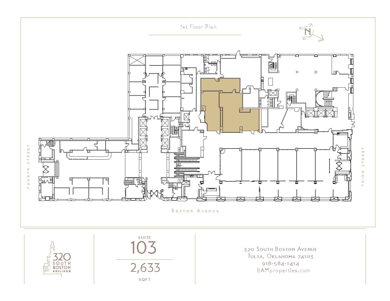 320 South Boston — 1st Fl, Ste 103320 S Boston Ave. Tulsa, OK 74103Rate includes utilities, building services and property expenses SIZE 2,633 SF TERM 5-10 Yrs RATE Upon Request SPACE USE Office CONDITION - AVAILABLE Now Download Floor Plan